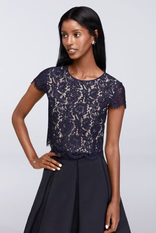 Lace Cap Sleeve Crop Top Wedding Dress / Cap Sleeve Lace Crop Top and Skirt | David's Bridal : Crop it like it's hot.. The top is made in a soft, high quality bridal lace in ivory. Contrast lace self tie fitted dress. You can still choose from a range of a cap sleeve bridal dress is a great short sleeve choice that will suit most brides. We love the ease and movement of this simple midi dress. Simple boho beach chiffon wedding dresses lace top backless bridal gown plus sz.